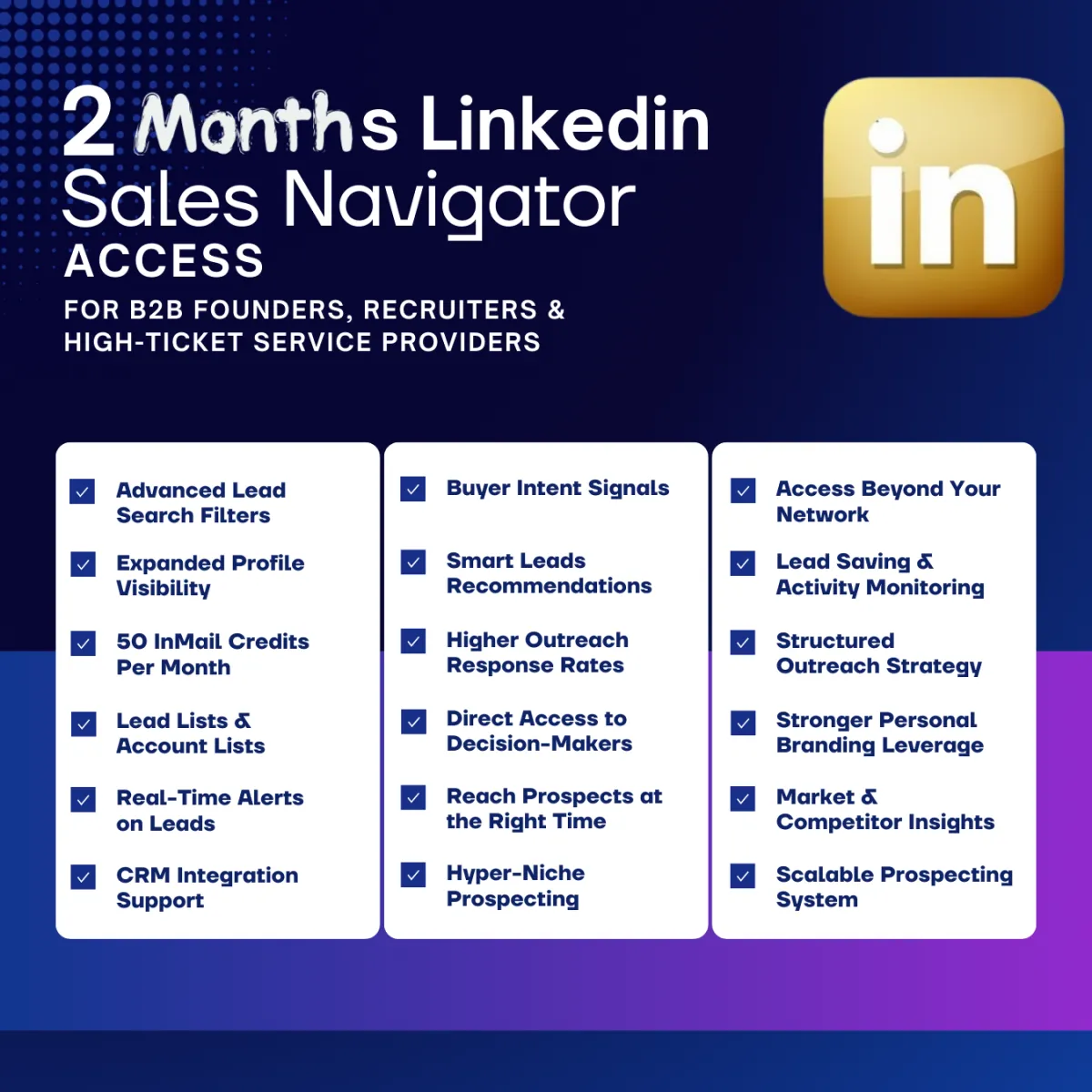 2 months full Sales Navigator access, double the prospecting runway